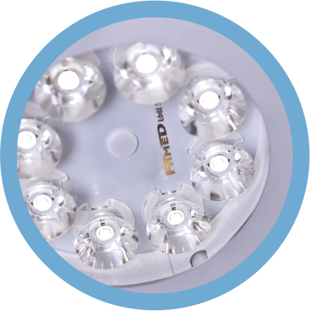 To make practitioners' everyday tasks easier and avoid maintenance problems, the SOLIS 30 uses LEDs which have a considerably longer service life than halogen bulbs, leaving practitioners free to devote all their time to patients. The round and ultra-flat shape of the light makes the product ergonomic and suitable for any type of installation. Smooth and rounded shape of the dome make it easy to clean and disinfect. The radial layout of the lenses and lamp diameter permit shadow suppression and three-dimensional lighting.
