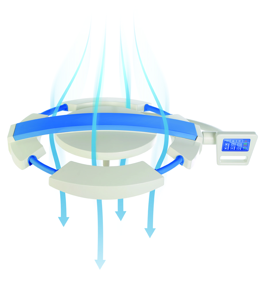 The little weight, ergonomic light heads as well as comfortable handles enable easy and precise set up and positioning of the operating light during surgery.