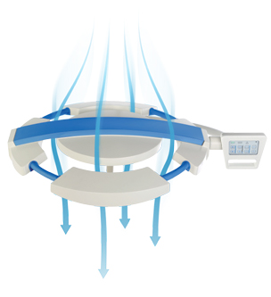 The little weight, ergonomic light heads as well as comfortable handles enable easy and precise set up and positioning of the operating light during surgery.